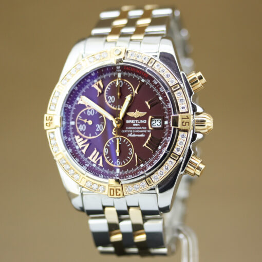 Breitling Chronomat Evolution – Ref. C13356 | Staal/Roségoud | Burgundy Wijzerplaat | Diamanten Bezel | Full Set